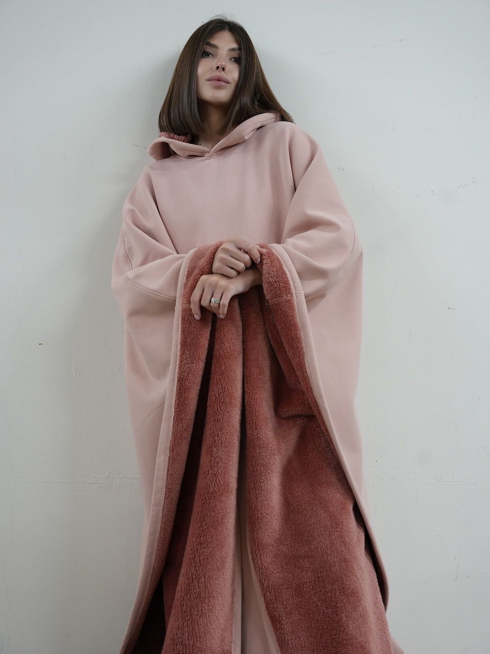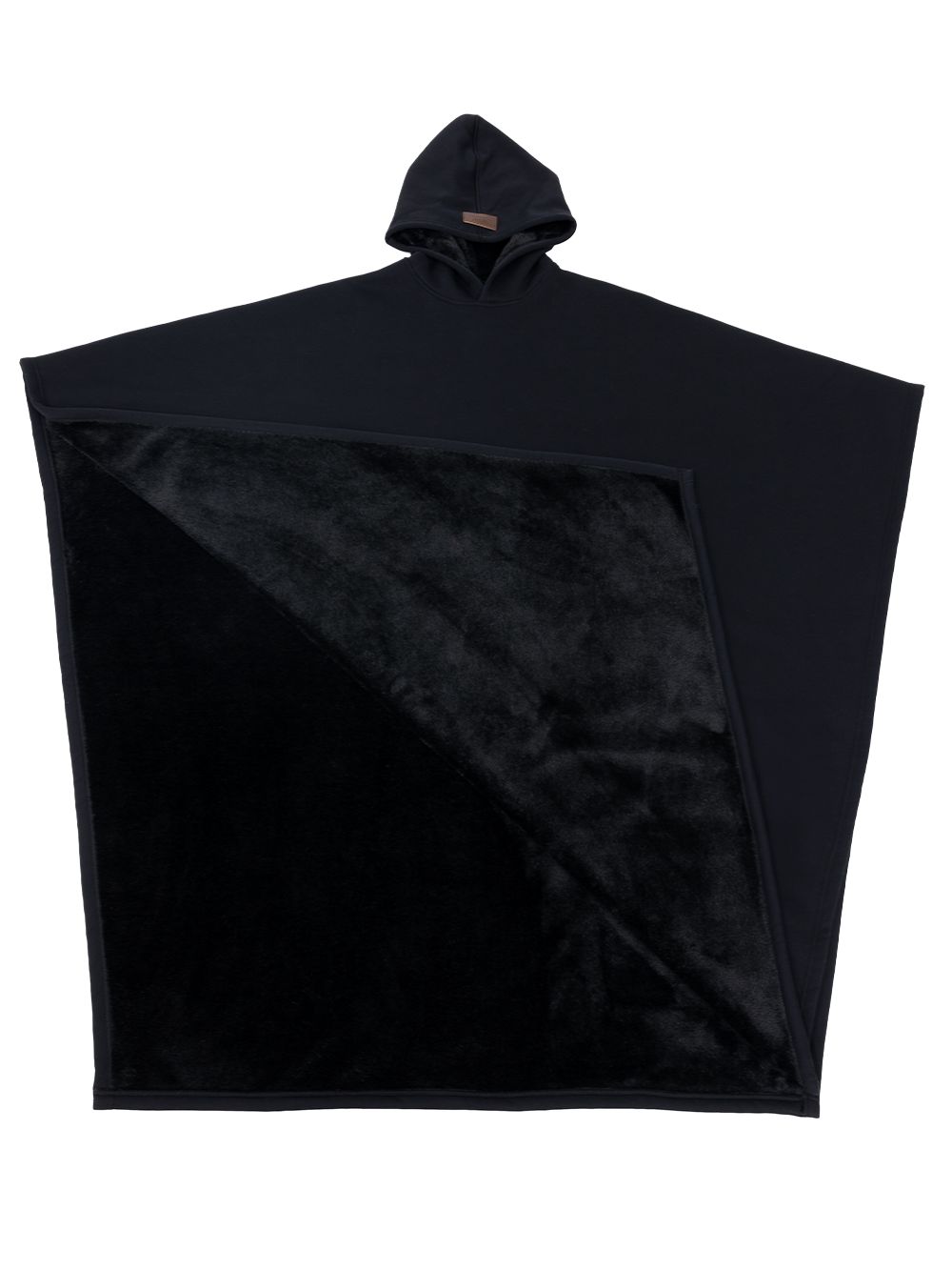 Sıradan, renkli ve çocuksu giyilebilir battaniyelerin aksine; simsiyah, asil ve gizemli bir duruşa sahip premium bir panço-hoodie. Yüksek kaliteli yumuşak peluş iç yapısı ve mat, tok dış kumaşı ile hem evde konfor anlarında hem de dışarıda 'cool' bir stil sunan lüks bir konfor ürünüdür.